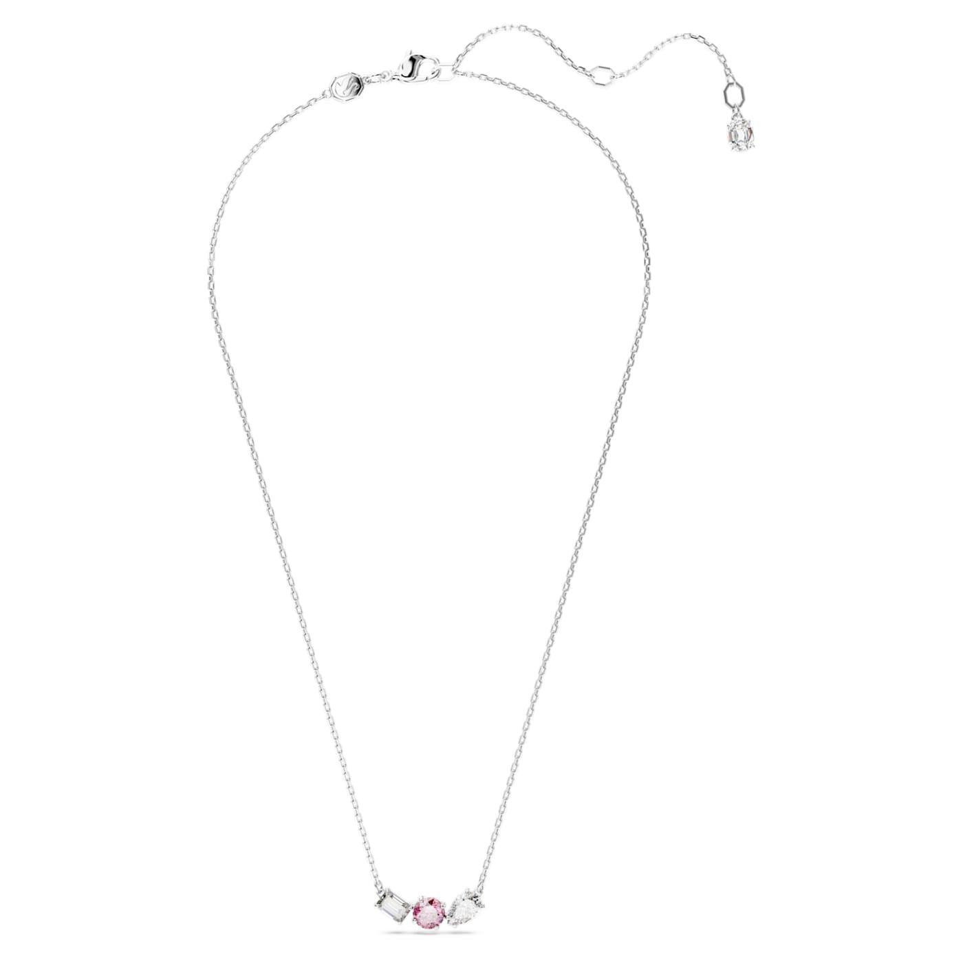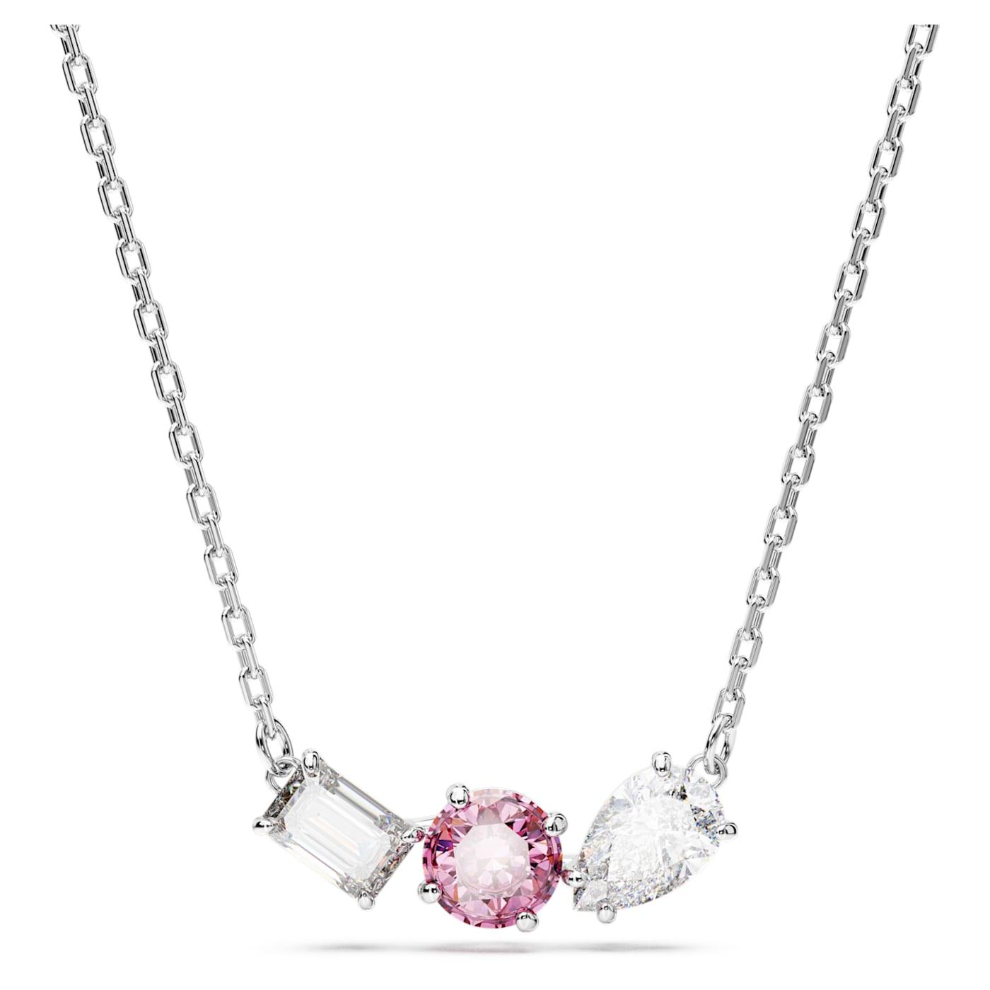 Questo elegante pendente Mesmera trasmette una squisita raffinatezza grazie al suo audace mix di tagli e colori. Montato su una delicata catena, il design placcato rodio presenta un trio di Swarovski Zirconia di diverse forme con incastonatura a griffe e una splendente pietra centrale rosa cipria. Un meraviglioso regalo che donerà quel tocco in più a qualsiasi stile.