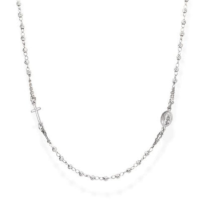 Rosario girocollo in Argento - Rodio - Trattamento Diamantato Cristalli - Lungh. 50+2cm - Grani Ø 3mm - Articolo corredato da shopper, scatola e garanzia