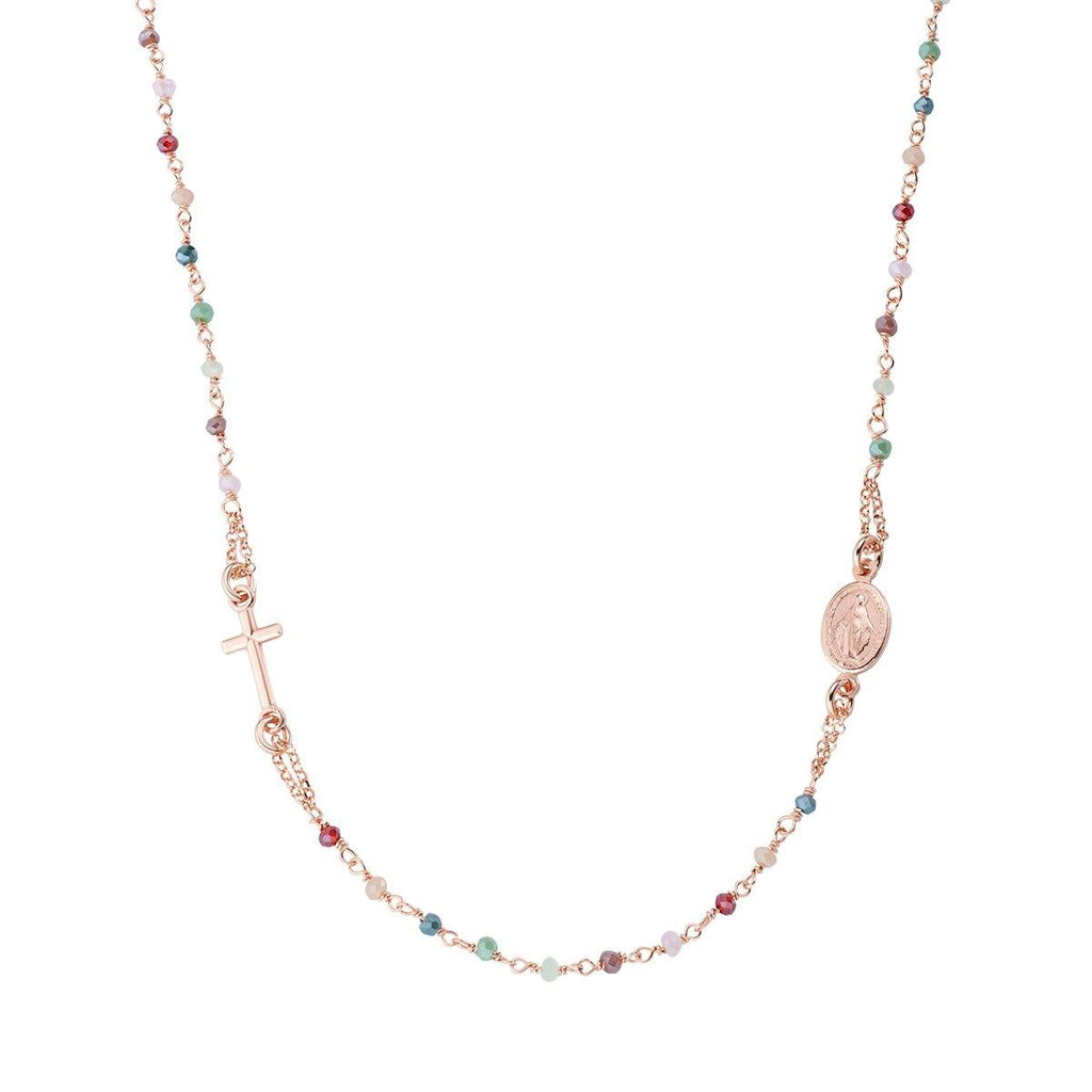 Collana in AG925 e cristalli multicolor - Rosè - Lunghezza 44+4cm - grani Ø 2,5mm - corredato da shopper, scatola e garanzia