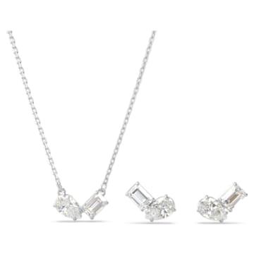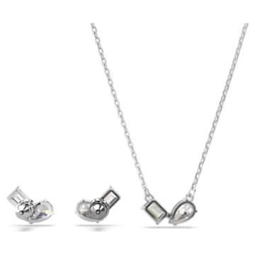 Crea un look di squisita eleganza con questo pendente e set di orecchini coordinati della famiglia Mesmera. Questi accattivanti gioielli sono placcati rodio e ogni creazione presenta una coppia di Swarovski Zirconia con montature a griffe, dali tagli Pear e Octagon-step. Semplice ma al contempo raffinato, questo set è un regalo perfetto per qualsiasi occasione speciale.