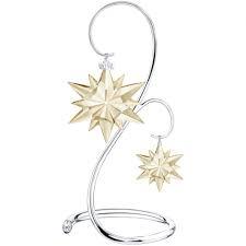 Articolo Swarovski NUOVO con garanzia originale Swarovski, La tradizione Swarovski degli addobbi natalizi in esclusiva SCS Annual Edition si rinnova con questo magnifico set, composto da due soggetti e dal supporto per l'Espositore per la Decorazione. La grande stella in cristallo dorato è completata da una placca in metallo con inciso 2017 e si abbina perfettamente al decoro più piccolo. Entrambi sono appesi su eleganti nastri di raso dorato e sono disponibili solo quest'anno per i membri SCS. Il regalo perfetto per un matrimonio, un anniversario, una nascita o un'altra occasione speciale dell'anno. Oggetto decorativo.