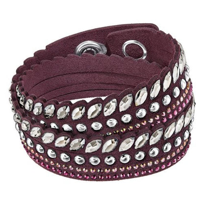 Bracciale Da Donna Di Swarovski Della Collezione Slake. Gioiello Con Cristalli Scuri Fissati Su Una Base In Alcantara® Rosso Scuro, La Chiusura È Con Due Bottoni A Pressione Impreziositi Da Cristalli Clear Crystal. Bracciale Della Taglia M. Lunghezza 36 Cm. Gioiello Realizzato Con Le Elaborate Tecniche Di Swarovski, Perfetto Per Le Occasioni Speciali E Per Personalizzare Ogni Look. La Referenza È 5241516