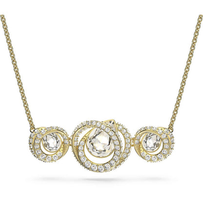 Questa collana placcata oro incarna la dedizione alla meticolosa artigianalità di Swarovski e farà parlare di sé. Ispirata al movimento delle onde del mare, si compone di tre incantevoli cristalli cry attorniati a spirale da pavé scintillante.