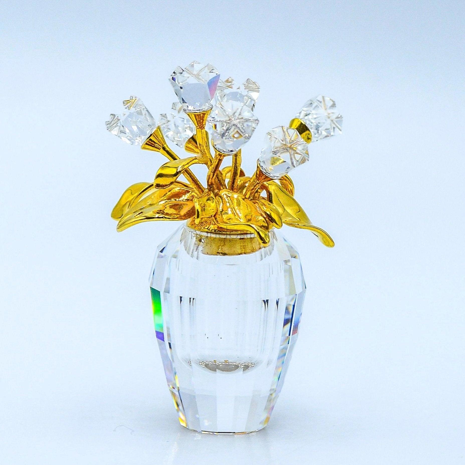 Realizzato in cristallo trasparente sfaccettato con una placcatura in oro per gli steli e le foglie.